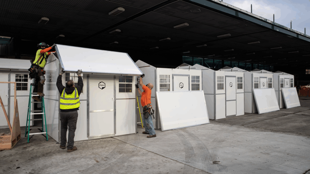 In California, particularly in cities like Los Angeles, the total cost per bed in Pallet Shelter villages often has very little to do with the shelter itself. Reports from the Los Angeles Times, CalMatters, and the A-Mark Foundation show that once utilities, concrete pads, fencing, administrative buildings, restrooms, and required services are added, total project costs can range from $17,000 to more than $77,000 per unit. In some early Los Angeles projects, the shelter represented only a small fraction of the total spend. The “temporary” solution begins to look suspiciously permanent when the supporting infrastructure costs more than the structure meant to be temporary.